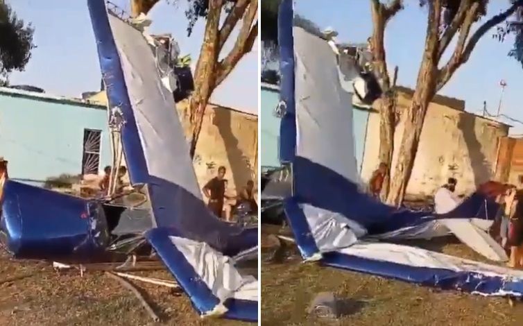 Em vídeos que circulam nas redes sociais, diversos moradores aparecem ao redor da aeronave, incluindo o piloto.