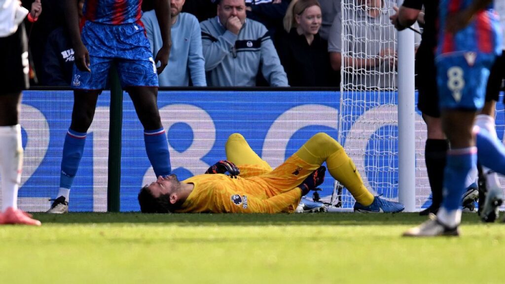 Alisson, goleiro do Liverpool, sentiu dores e precisou ser substituído aos 30 minutos do segundo tempo da partida diante do Crystal Palace, pela Premier League, neste sábado (5). Os Reds venceram por 1 a 0 e seguem na liderança da competição.
