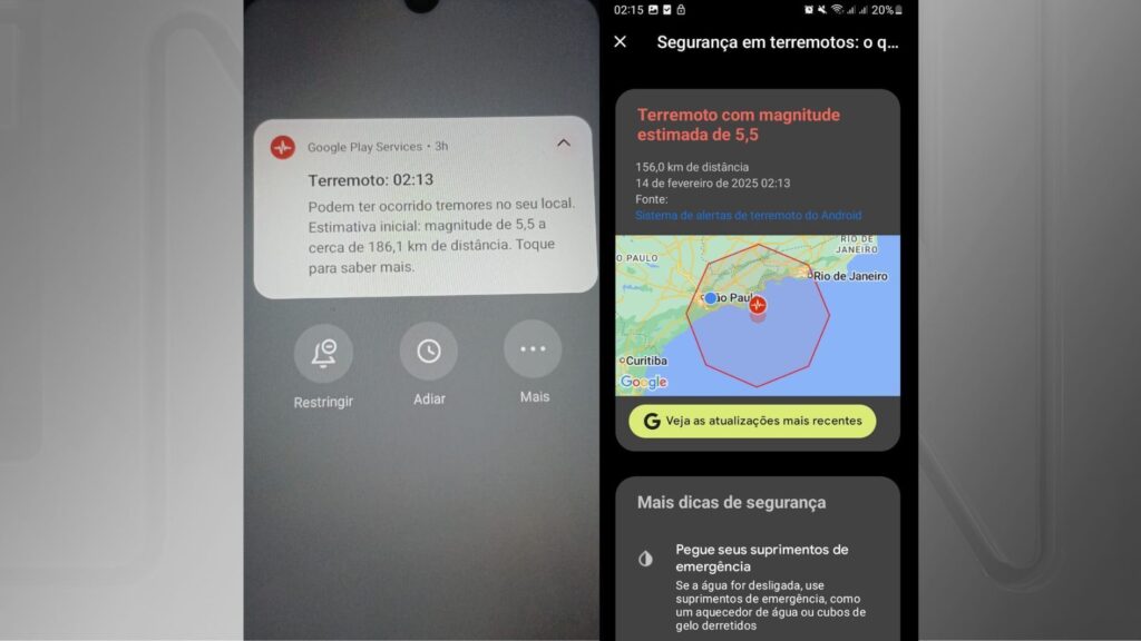 O informe veio após moradores de São Paulo e do Rio de Janeiro receberem, durante a madrugada desta sexta-feira (14), um alerta de terremoto de magnitude de até 5,5 na escala Richter.