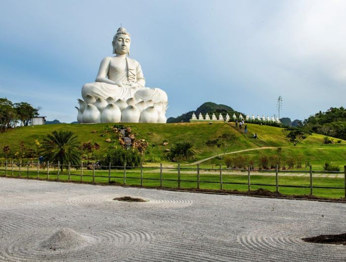 Construído entre 2018 e 2020, o Grande Buda tem 35 metros de altura e cerca de 350 toneladas de concreto, aço e ferro. Considerada a maior imagem de Buda do Ocidente, a estátua atrai milhares de visitantes todos os anos. A visitação à Praça Torii é gratuita e aberta diariamente.