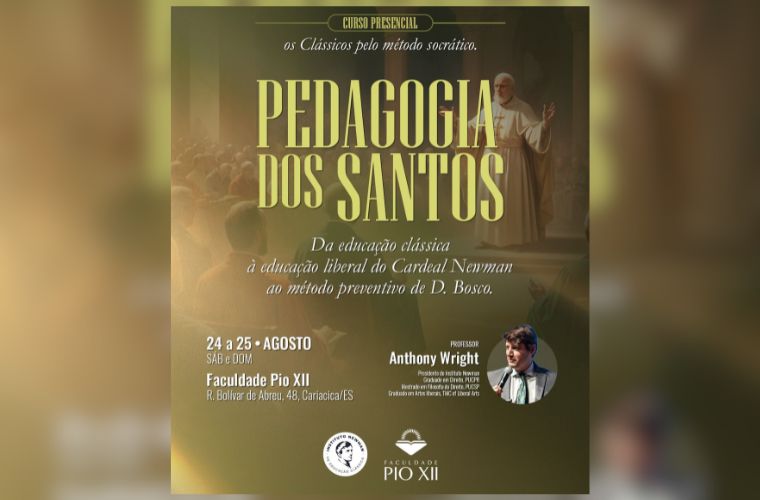 O Instituto Newman de Educação Clássica, em parceria com a Faculdade Pio XII, fará uma imersão de alto nível e inédita no Estado do Espírito Santo. A formação acontece em Cariacica, no Campus da instituição de ensino parceira, nos dias 24 e 25 de agosto e tem como tema: A Pedagogia dos Santos – Da Educação Jesuíta à Educação Liberal do Cardeal Newman ao Método Preventivo de Dom Bosco.