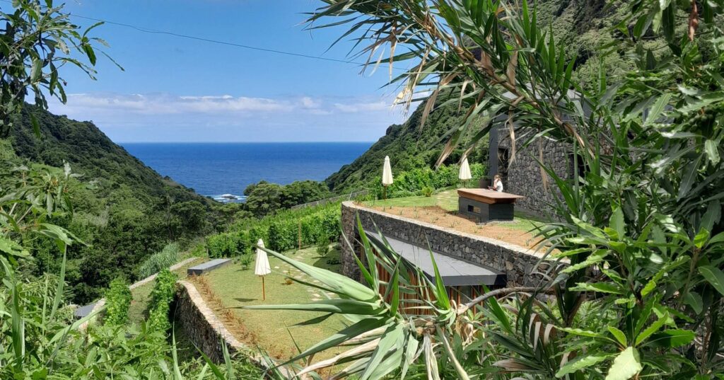 Fica no Socalco Nature Calheta, o agroturismo aberto, em finais de 2020, na Calheta, a oeste do Funchal. Os 10 quartos e as 10 unidades premium estão encaixados nos socalcos deste refúgio com os olhos postos sobre o mar. O proprietário é Octávio Freitas, chef do Desarma, o restaurante (uma estrela Michelin) instalado no topo do edifício do hotel The Views Baía, localizado no Funchal, e do Razão, o restaurante do agroturismo, que venceu em 2023 o Prémio Nacional de Turismo, na categoria Turismo Gastronómico. Da necessidade de criar um jardim, surge a plantação de vinha com as castas Verdelho, Malvasia Fina e Terrantez. Entre as linhas das videiras são plantados hortícolas complementados pelas plantas aromáticas. Tudo é aproveitado para o restaurante do Socalco Nature Calheta (a partir de €160). “Há uma simbiose entre a agricultura e a gastronomia”, resume Nélia Freitas, irmã do proprietário e diretora geral do alojamento. Além de chef de cozinha, Octávio Freitas é produtor de vinhos. O Galatrixa branco 2021, elaborado a partir das referidas castas, marca a estreia desta aventura. A vinificação das uvas é feita na Adega de São Vicente, situada no norte da ilha, e tem como enólogo João Pedro Machado. Cagarra é o rótulo que se segue. O primeiro é de 2022 e é feito a partir das castas Verdelho e Sercial de uma vinha localizada a 700 metros de altitude, na freguesia dos Prazeres, na Calheta. Em 2023, começam a ser produzidos os vinhos Massaroco. Há um rosé e um clarete. Ambos são feitos a partir das castas tintas Tinta Negra e Merlot, vindimadas no norte da ilha.