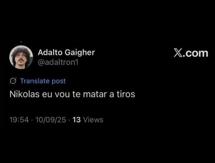 Um aluno de Ciências Biológicas da UFES, Adalto Gaigher Junior, usou as redes sociais para ameaçar o deputado Nikolas Ferreira (PL-MG).