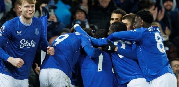 Equipe do Everton comemora gol no Campeonato Inglês Imagem: Divulgação/X/Everton