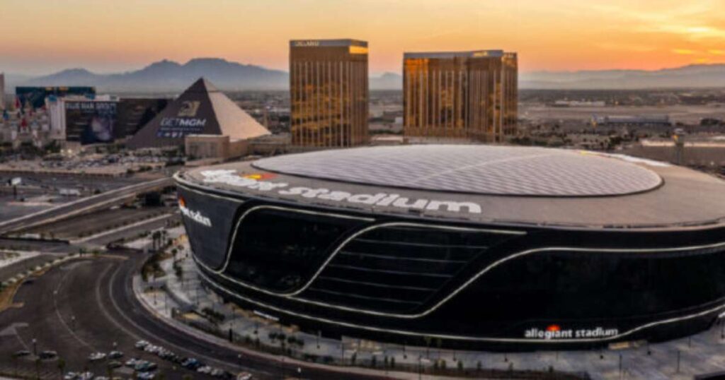 Localizado a apenas 3km da famosa avenida Strip, o Allegiant foi inaugurado no meio da pandemia, em 2020. Ele teve um investimento de aproximadamente R$11 bilhões, o que o tornou o segundo mais caro do mundo, ficando atrás apenas do SoFi Stadium. A arena também é referência em sustentabilidade. Além de ter um sistema de reciclagem, e dois tipos de gramados retráteis, foi o primeiro da NFL a ser alimentado inteiramente por energia sustentável.