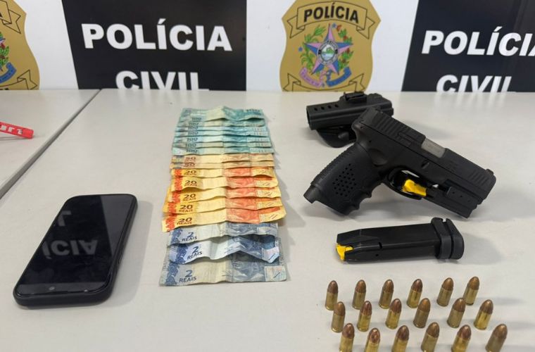 As ordens judiciais foram expedidas pelo 2º Juízo da Comarca da Serra. Durante as diligências, os policiais realizaram buscas no imóvel de um dos alvos da investigação, suspeito de atuar na contabilidade e na comercialização de entorpecentes. No local, foi localizada uma arma de fogo da marca Taurus, modelo G3, calibre 9mm, equipada com mira laser, coldre, dois carregadores e 18 munições intactas do mesmo calibre.