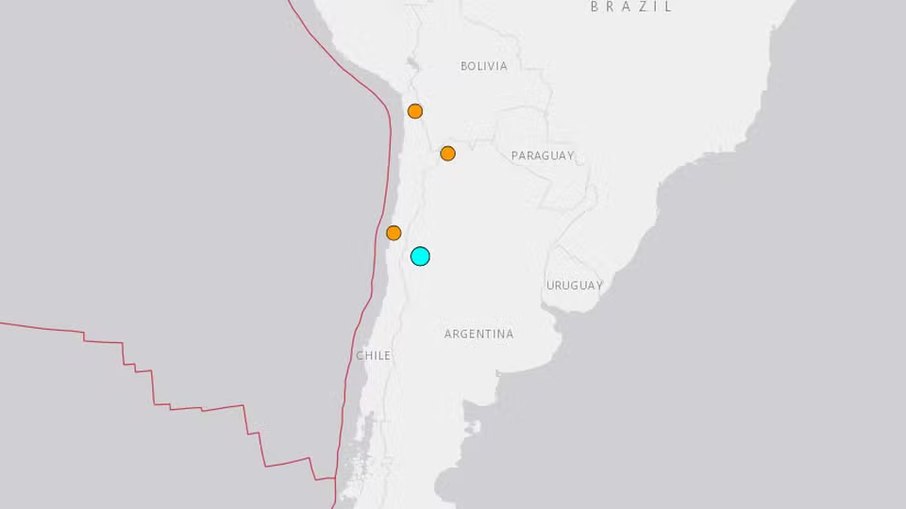 Terremotos registrados na Argentina e Chile