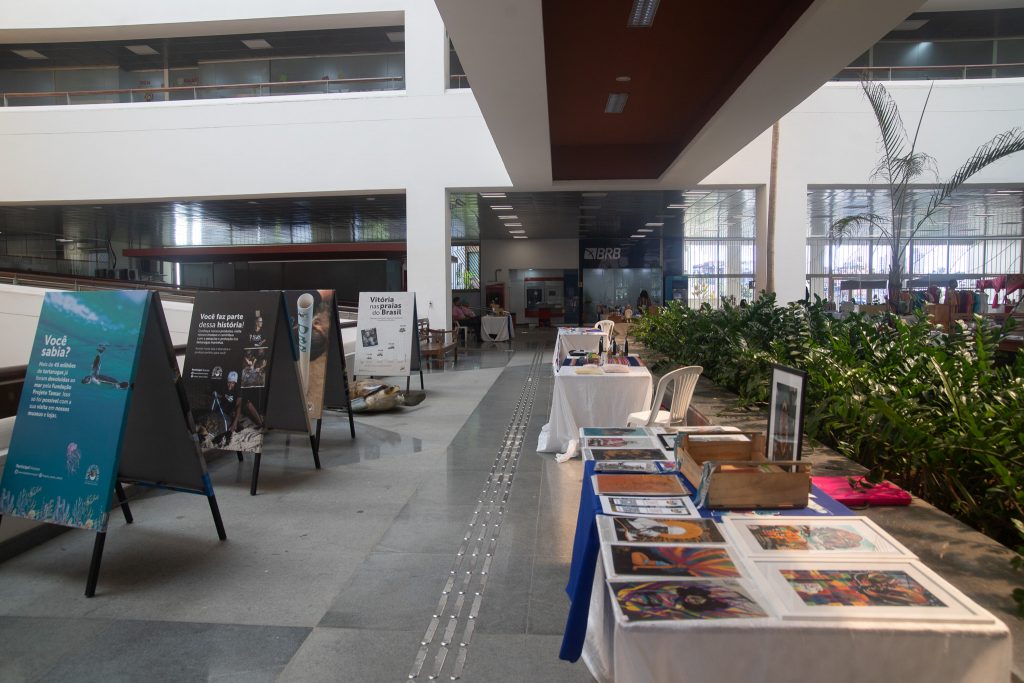 Descrição da imagem: artistas no átrio do TJBA {Fim da descrição}.